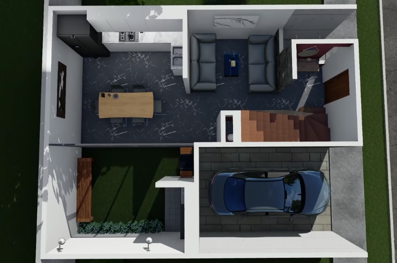 Es así que te ofrecemos este Diseño de vivienda estilo minimalista a un bajo costo, esta situada en un terreno con medidas de 8 m x 10 m: